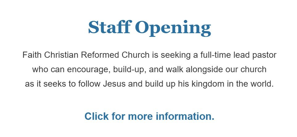 Faith Church's leadership team includes eight elders and five deacons who oversee the needs, operations, and partnerships of the church. You can forward a message to these teams below.